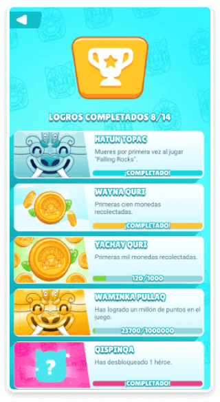Excelente juego. Intuitivo. El fondo musical acertado y temático. Sería interesante que se puedan ir agregando otros personajes de la cultura peruana preinca. -Gonzalo Mier