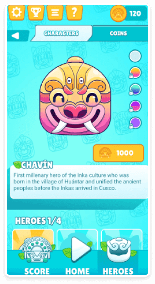 Excellent game. Intuitive. The musical background is right and thematic. It would be interesting to add other characters of the pre-Inca Peruvian culture. -Gonzalo Mier