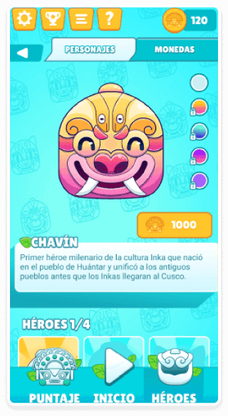 Excelente juego. Intuitivo. El fondo musical acertado y temático. Sería interesante que se puedan ir agregando otros personajes de la cultura peruana preinca. -Gonzalo Mier