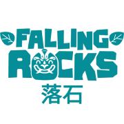 高品質の PNG 形式 (高さ 180 ピクセル、600 dpi) の Falling Rocks 横型ロゴ